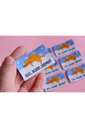 Lot de 5 étiquettes tissées pour personnaliser vos créations. Ces étiquettes bleu pastel et blanches arborent un adorable chat roux, illustrant à merveille ce que ces félins font de mieux !...