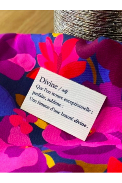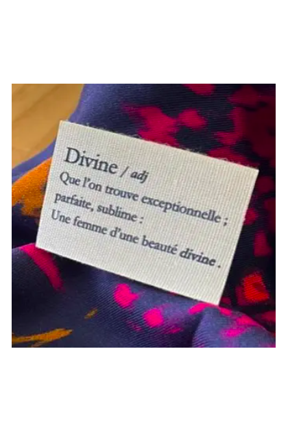 Ajoutez une touche de poésie et de caractère à vos créations avec cette étiquette à coudre imprimée Divine, fabriquée en France. Avec son joli texte inspirant et son style élégant, elle apporte une finition soignée et pleine de personnalité à vos vêtements et accessoires cousus main. Cette étiquette imprimée offre un rendu fin et délicat, idéal pour mettre en valeur le message. Réalisée en taffetas aspect coton, elle séduit par son toucher doux et son apparence raffinée, parfaite pour accompagner vos plus belles créations couture.