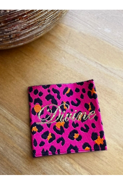Affirmez le style de vos créations avec Divine Léopard Pink, une étiquette à coudre tissée en France au motif léopard revisité dans des nuances orange et rose. Élégante et originale, cette étiquette tissée apporte une finition moderne et raffinée à vos vêtements et accessoires cousus main. Avec son fond rose, ses touches d’orange profond et son inscription dorée, Divine Léopard Pink est idéale pour personnaliser une robe, une blouse, une veste, un gilet, une trousse ou tout autre projet couture. Son design félin et tendance en fait le détail parfait pour signer vos réalisations avec caractère.