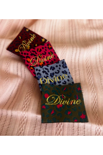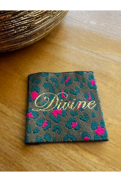 Élégante et originale, cette étiquette tissée apporte une finition moderne et raffinée à vos vêtements et accessoires cousus main. Avec son fond kaki, ses touches de fuschia profond et son inscription dorée, Divine Léopard Blue est idéale pour personnaliser une robe, une blouse, une veste, un gilet, une trousse ou tout autre projet couture.