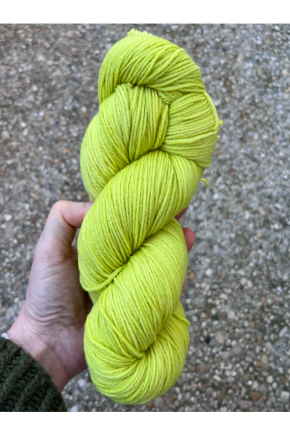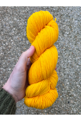 Le fil est teint à la main par Une maille à la fois à Annecy avec des colorants approuvés GOTS. Les couleurs sont franches mais très légèrement nuancées ton sur ton.
