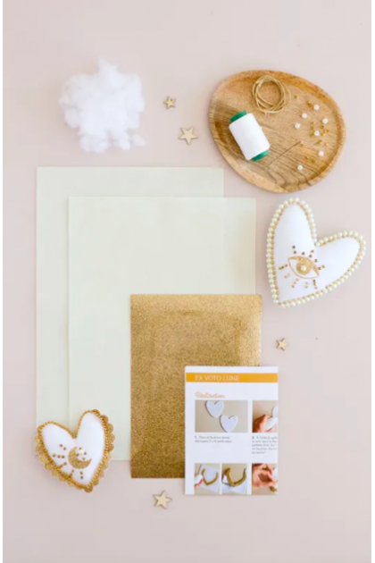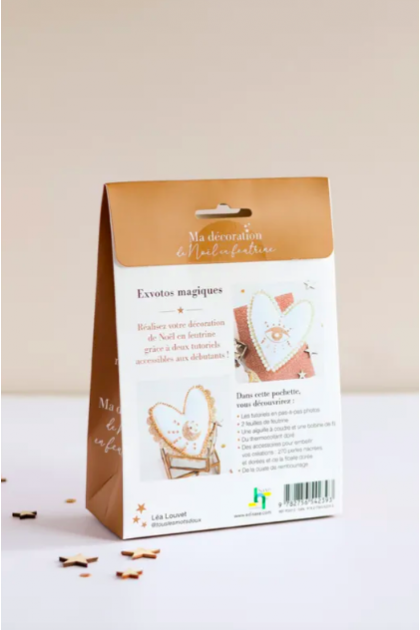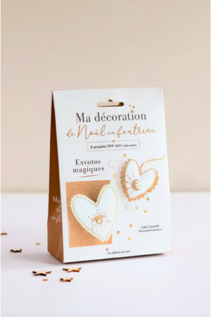 En effet, cette pochette vous offre l’opportunité de réaliser vous-même 2 cœurs exvotos à suspendre dans votre sapin pour inviter la magie de Noël dans votre intérieur. Des projets DIY et un kit feutrine à la portée des débutants comme vous, à la recherche de modèles simples sans avoir besoin de courir après le matériel (feuilles de feutrine, aiguille, fils…) nécessaire à leur réalisation… Vous allez aimer créer ces originales suspensions de Noël en feutrine à l’esprit bohème chic !