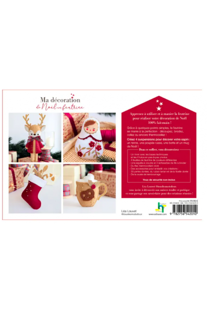 Bonne nouvelle : même si vous débutez en Do It Yourself, c’est une matière très simple à découper, broder, coudre ou thermocoller. Quelques points basiques suffisent, et vous les apprenez avec une grande facilité grâce à ce kit feutrine. Ne cherchez plus des idées de décoration de Noël en feutrine à faire soi-même : vous les avez trouvées !