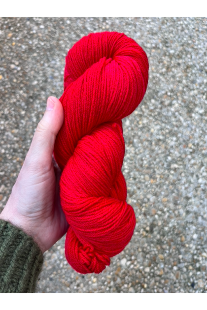 Le fil est teint à la main par Une maille à la fois à Annecy avec des colorants approuvés GOTS. Les couleurs sont franches mais très légèrement nuancées ton sur ton.