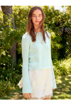 Tricotez le pull en jersey endroit, de bas en haut, avec des diminutions pour l’encolure raglan. Commencez à tricoter le dos et le devant en rond jusqu’aux aisselles.