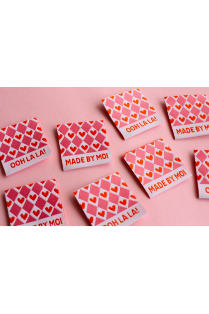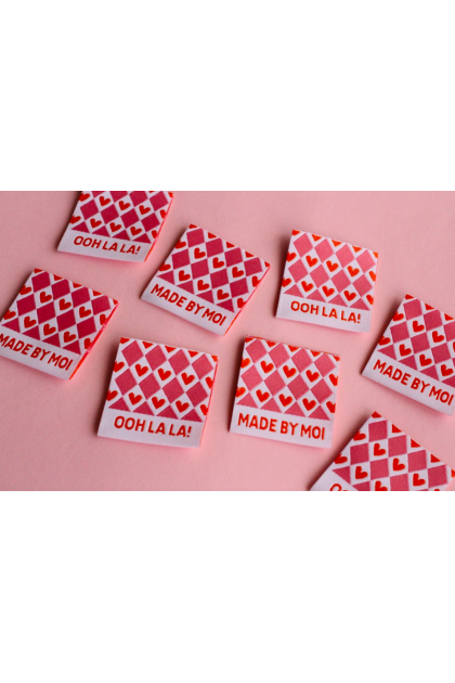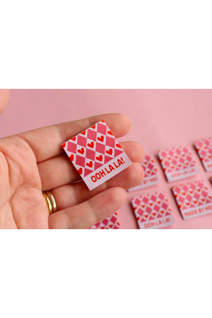 Terminez vos créations faites main avec ces étiquettes de couture tissées au motif de cœurs, ludiques. Ces étiquettes de vêtement tissées de haute qualité sont parfaites pour coudre sur des vêtements faits main, des projets de couture, des pièces au crochet, tricotées, des accessoires et des cadeaux faits main.