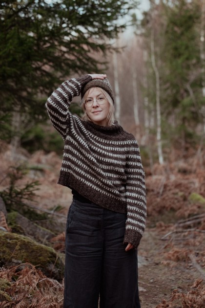 Lotta H. Löthgren est créatrice de tricots, auteure et teinturière de laine. Elle vit avec sa famille, ses chiens et ses poules dans un village du sud-est de la Suède, où elle tient également une boutique de laine. En tant que créatrice, elle aime traduire le monde naturel en vêtements. Son premier livre, « Observations : Tricots et Essais de la Forêt », a été publié par Laine Publishing en 2023.