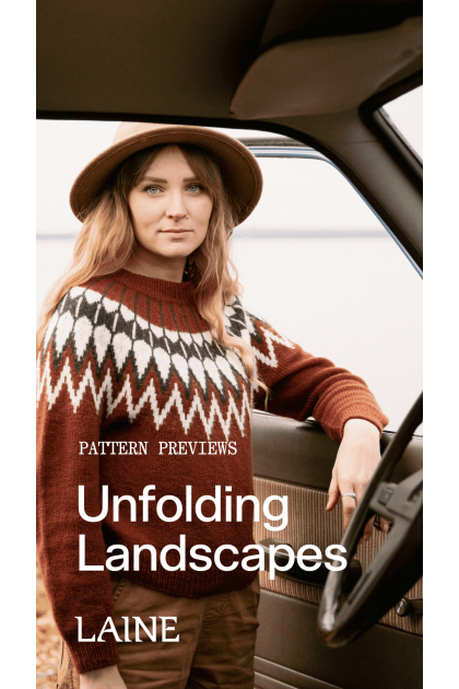 « Unfolding landscapes » présente 17 magnifiques tricots inspirés d'un voyage à travers la Finlande du Nord. Ronja Hakalehto a imaginé des modèles parfaits pour vos escapades : un pull léger pour les randonnées, un châle douillet pour se réchauffer au coin du feu, et un t-shirt ou une robe légère pour les chaudes journées d'été au bord de l'eau.